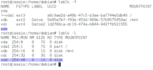 root@jessie:/home/debian# mkswap -L «Ejemplo_paototix» /dev/vdd1