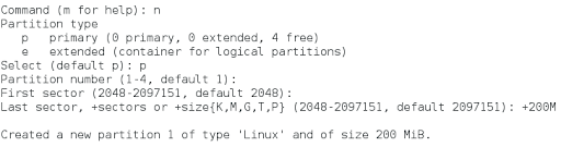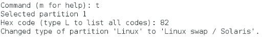 Hemos creado una partición de un tamaño de 200 Mb y le hemos dado un formato de tipo SWAP ( Nº 82).