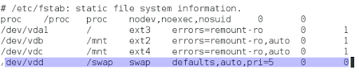 3. Modificamos el fichero /etc/fstab y le asigmanos la siguiente estructura:
