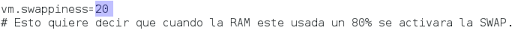 6. Para modificar el valor de la SWAP editamos el fichero /etc/sysctl.conf y añadimos el siguiente parámetro: “vm.swappiness=x%”.